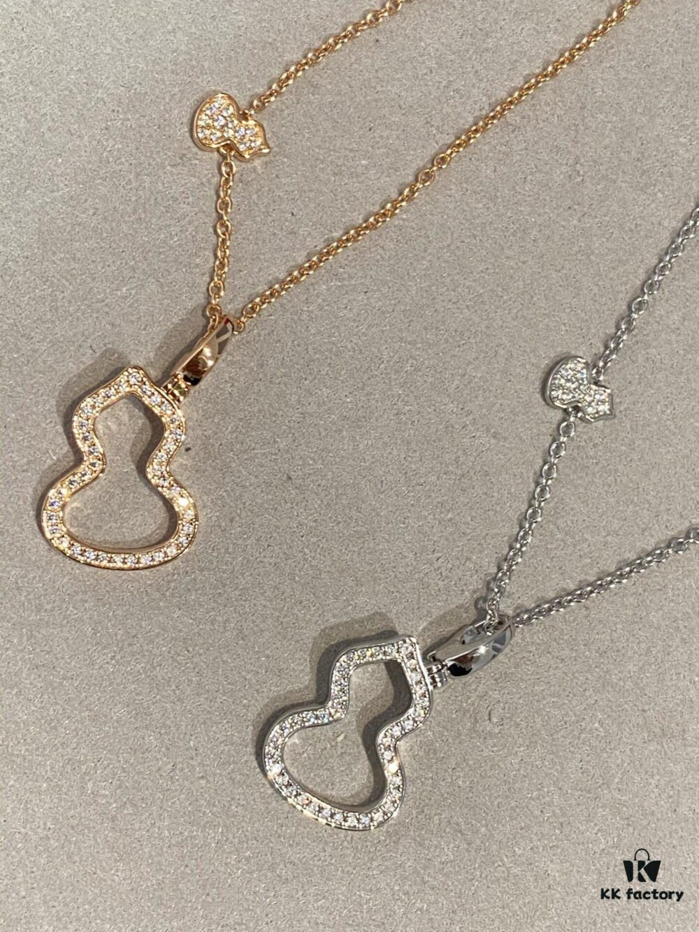 Kirin New Hollowed Gourd Necklace Medium Size, V Gold Plated with Rose Gold and White Gold Options