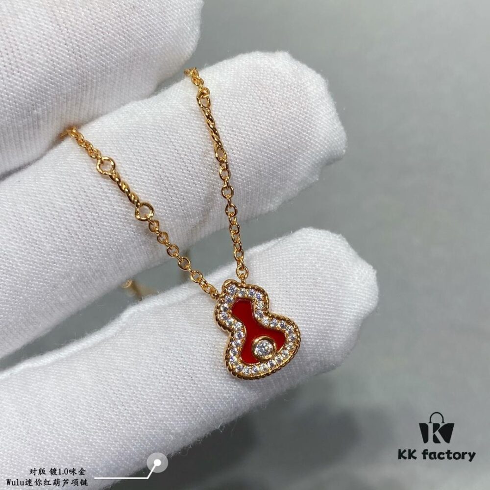 Kirin Mini Diamond Red Gourd Necklace, Stylish and Versatile with Thick Gold Plating, Real Gold Feel, Eight Hearts and Eight Arrows High-Carbon Diamond, Small and Exquisite