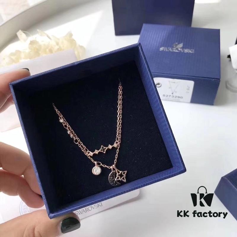 Swarovski Swarovski Star and Moon Necklace, Goblin Matching Style Collar Chain, Rose Gold Plated