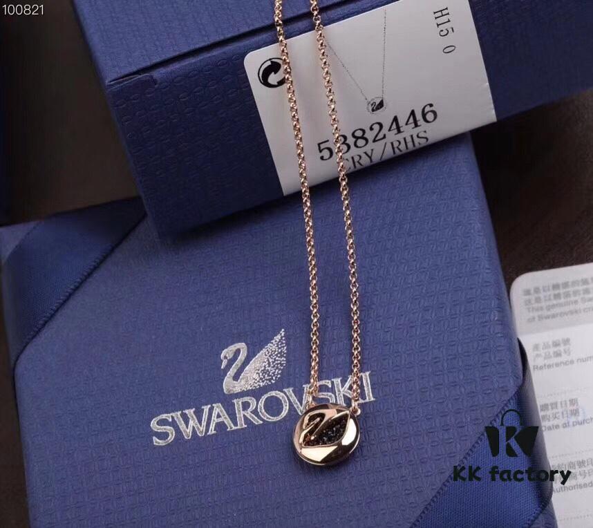 Swarovski SWAN Classic Rose Gold-Tone Swan Pendant Necklace with Crystal Detail, Elegant Adjustable Chain for Women