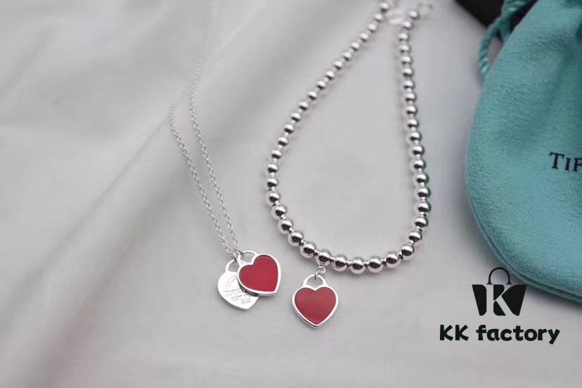 Tiffany & Co. New Year Red Heart Bracelet and Necklace, Pure Silver Craftsmanship with New Technology, Premium Quality – Real Item Exceptionally Beautiful! Bracelet Interior Made with Pure Silver Wire, 4mm S925 Sterling Silver Beads, Authenticity Guaranteed