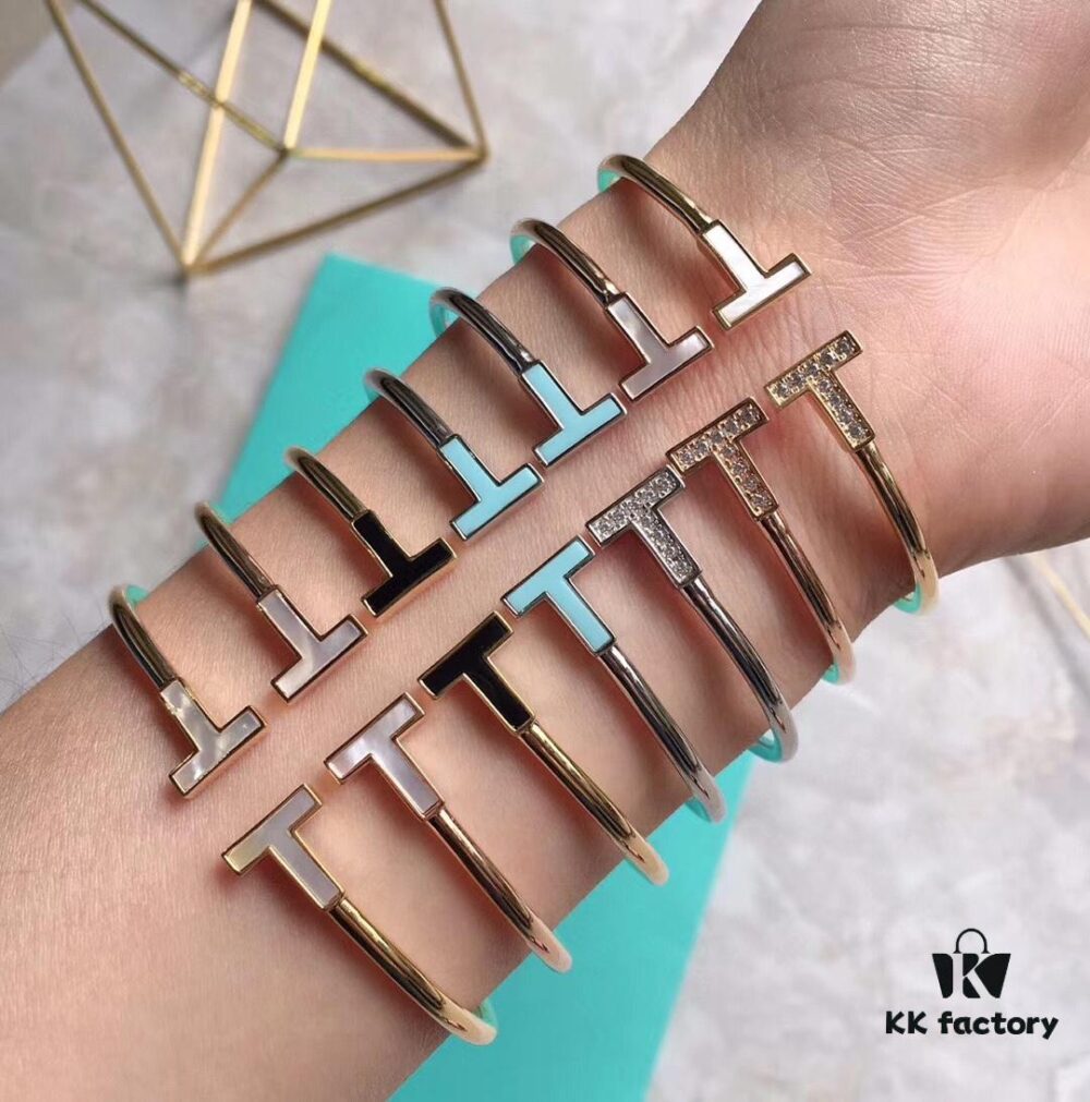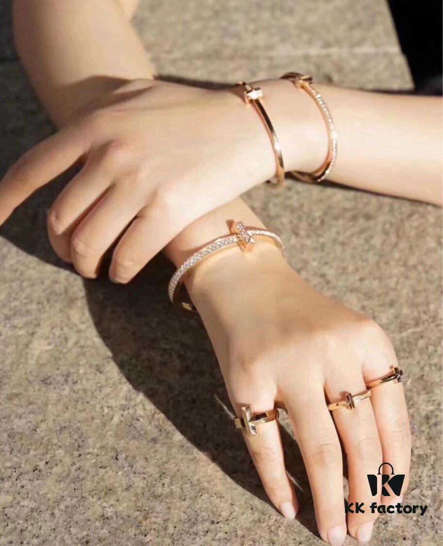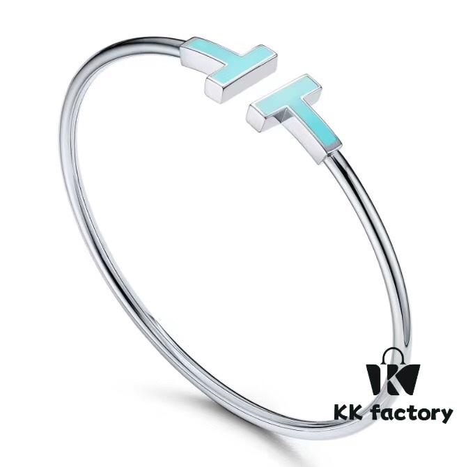Tiffany No-Diamond Double T Memory Bracelet, Cabinet Quality, ZP Mold Making, CNC Logo Engraving, 925 Pure Silver Material, Two Colors Available