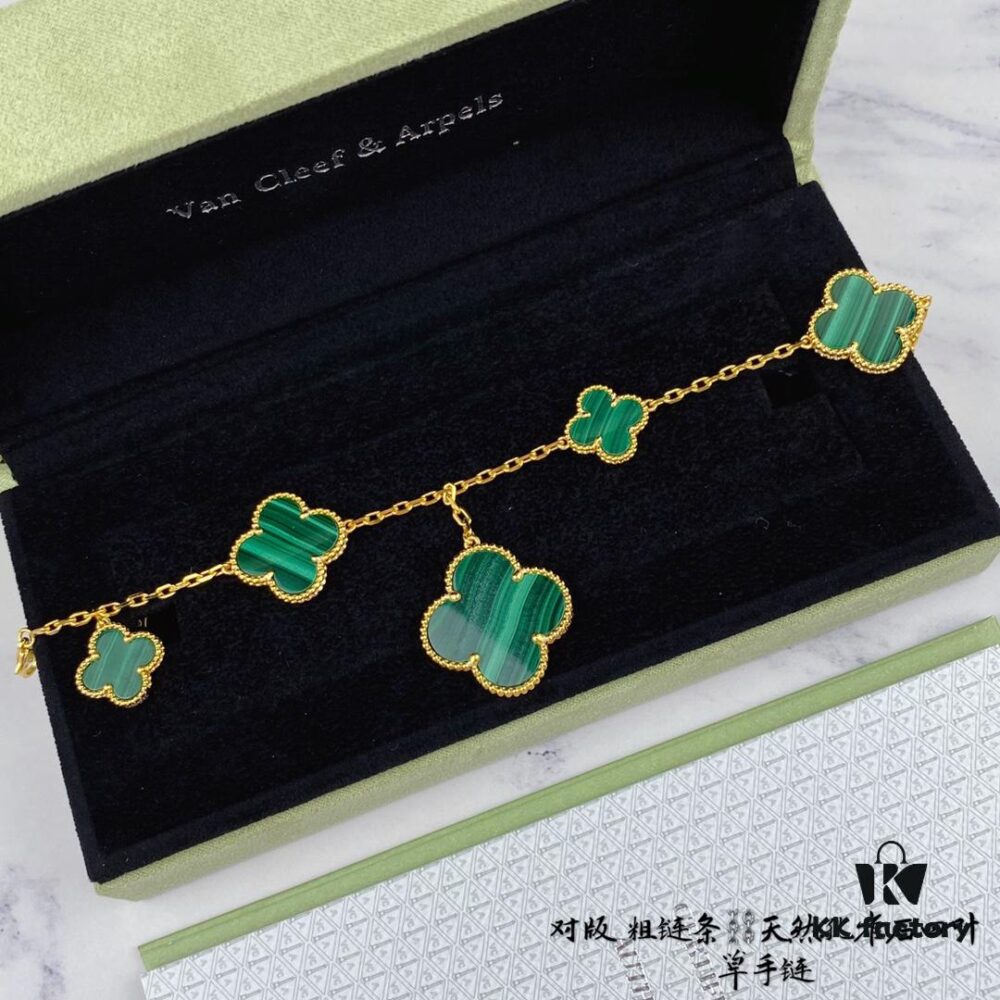 Newly Upgraded Version Compatible with 925 Natural Malachite VCA New Five-Petal Four-Leaf Clover Bracelet, High-End Market Edition! 1:1 High-Quality Custom 925 Sterling Silver, VCA Van Cleef & Arpels Limited Edition Four-Leaf Clover Leaves, Store Exclusive Limited Model, Perfect for Travel, an Absolute Must-Have. Original Lobster Clasp, Top-Tier Quality Available on Market