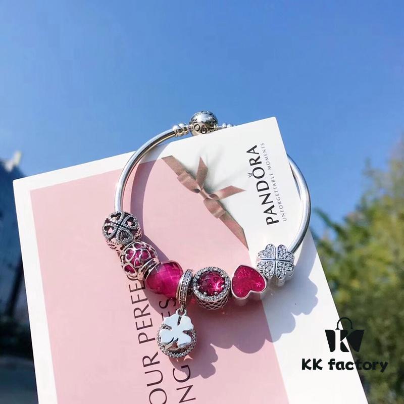 Pandora Enamel Clover Passionate Rose Red New Arrival! High-Quality Replica with Original Materials, Full Diamond-Paved Hollow Clover Pendant with Rose Red Heart Faceted Glass and Sparkling Cat’s Eye, Double-Layer Clover Charm with S925 Silver and Authentic Packaging