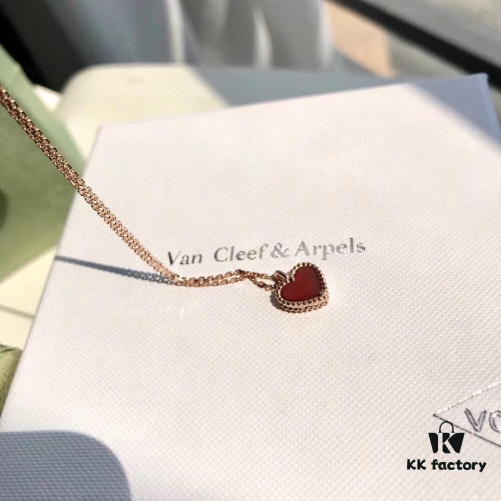 Van Cleef & Arpels Sweet Alhambra Heart Pendant, Rose Gold with Red Jasper