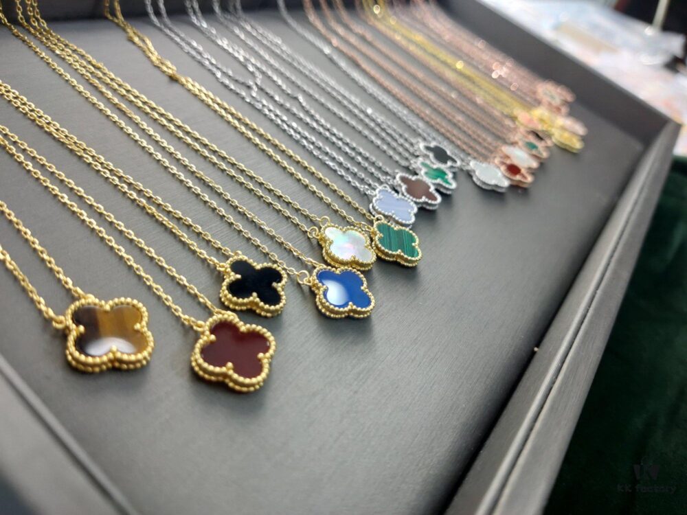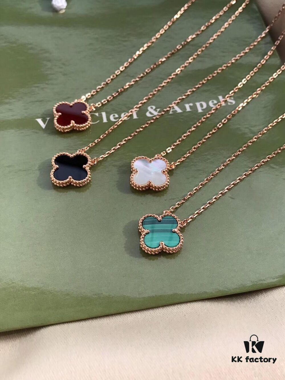 Van Cleef & Arpels VCA Alhambra Clover Necklace, Genuine Design! The clover-shaped agate features smooth contours and elegant lines, meticulously hand-polished with plump small beads for a strong three-dimensional effect. Lobster clasp is custom-grade, complete with an exclusive anti-counterfeit code. Each necklace has a unique product authentication number, ensuring individuality. Hand-engraved floral chain, each link with 4 faceted surfaces! Exquisite craftsmanship, exuding refined elegance. Beautiful when worn alone or layered.