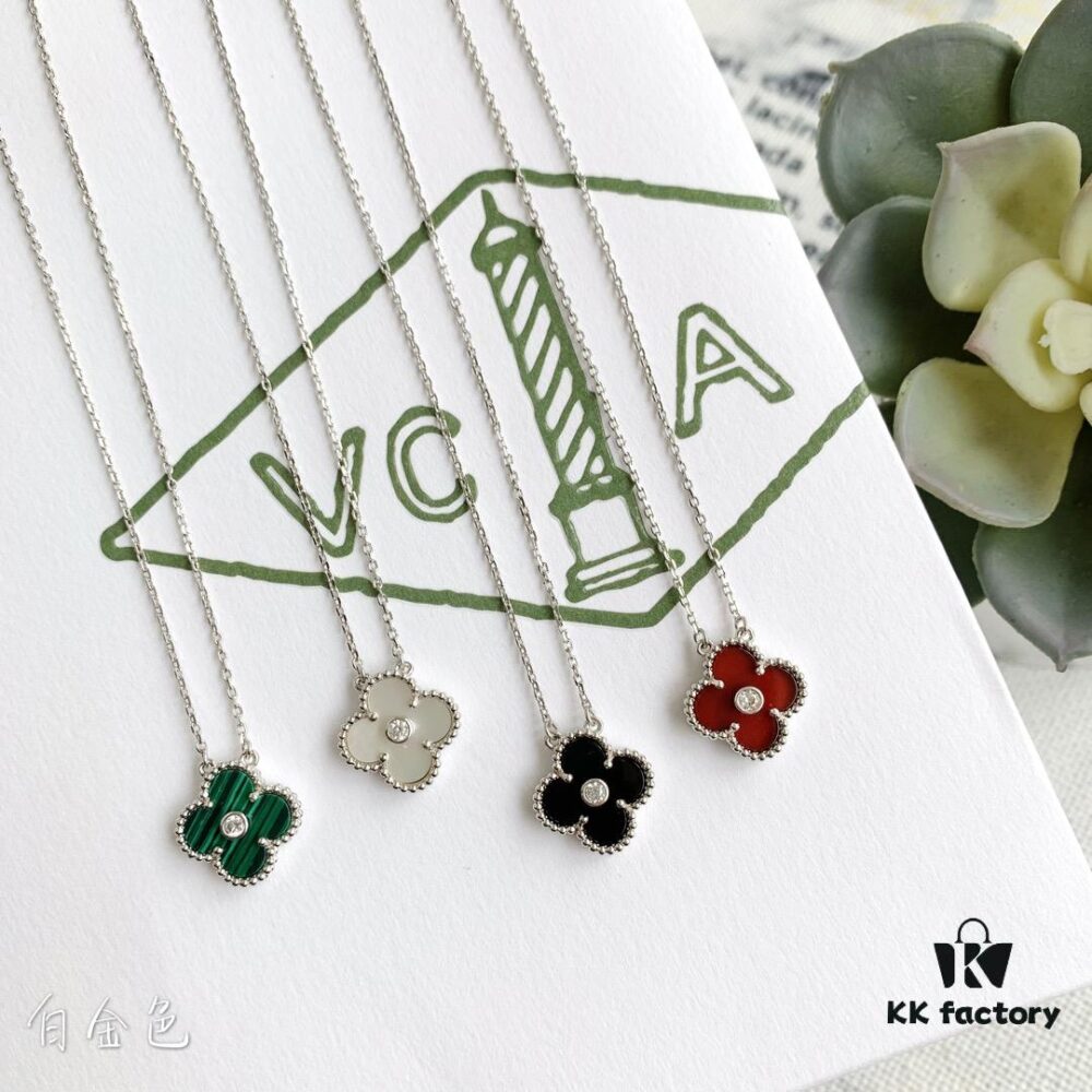 Christmas Gift 🎁 Van Cleef & Arpels Alhambra Clover Necklace with Natural Black Onyx, Red Jasper, Mother of Pearl, and Malachite in Rose Gold, Yellow Gold, and White Gold Plated 925 Sterling Silver