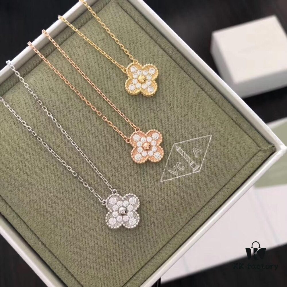 VCA Full Diamond Four-Leaf Clover Necklace in Medium vs Small Size 🍀
