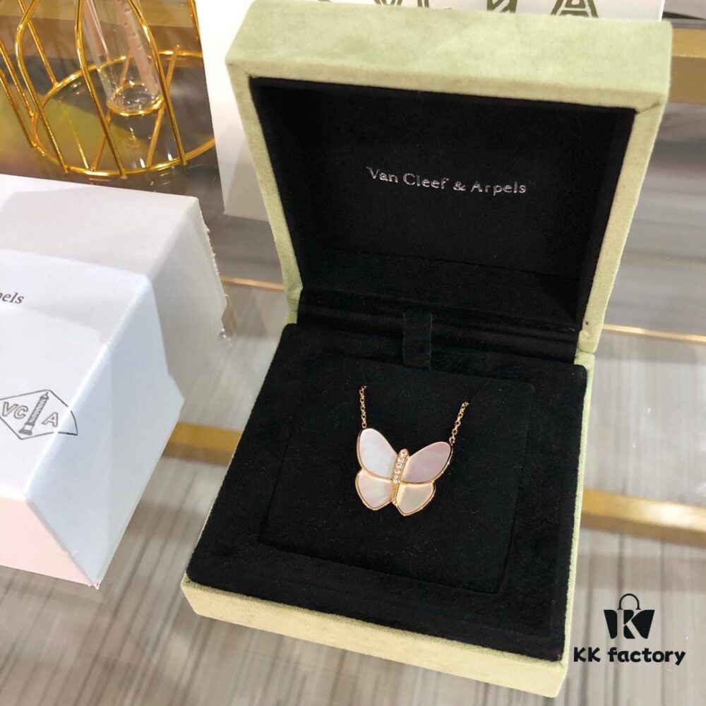 VCA Large Butterfly Necklace, Exquisitely Crafted with Mother-of-Pearl and Hand-Set Diamonds