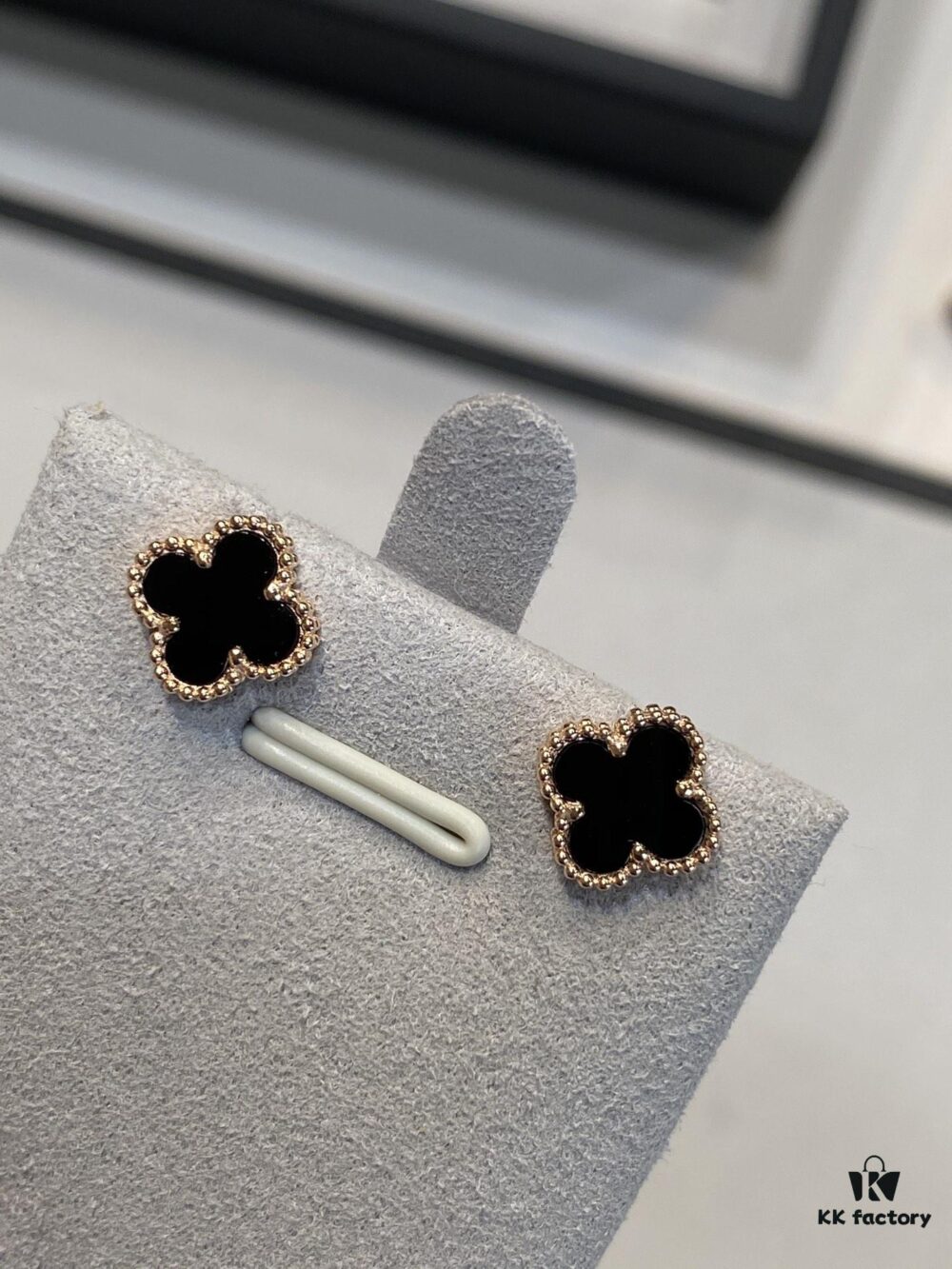 Mini Four-Leaf Clover Earrings, Black with Gold and Rose Gold Accents