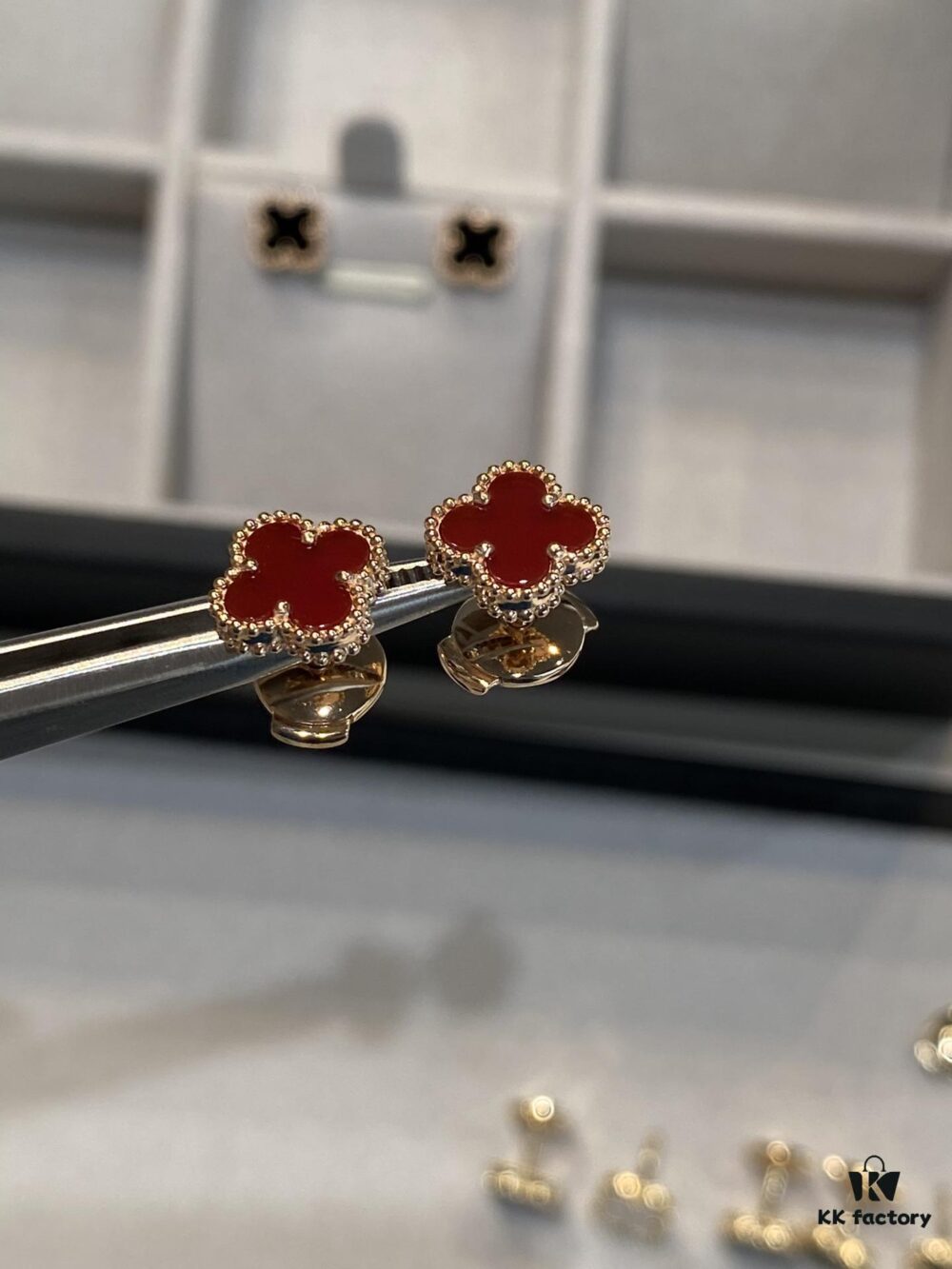 Mini Four-Leaf Clover Red Carnelian with Rose Gold