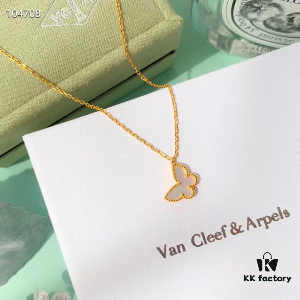 New Color ️ Van Cleef & Arpels Alhambra Small Butterfly Necklace, 925 Silver Version, Original Mould, Vacuum Plated with 18K Gold, 45cm Chain Length, 0.9cm Pendant