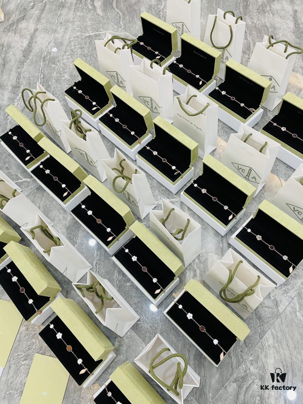New Arrival Transparent White Shell Heart ❗️ Gold-Tone Chain. Authentic Purchased Genuine Item, Original Rhombus Clasp ❗️ Highest Quality Van Cleef & Arpels VCA Alhambra Clover 🍀 Five Motif Bracelet Made of High-End Custom 925 Sterling Silver with Thick Gold Plating, High-Definition Engraving, Latest Store Model with Authentic Rhombus ◇ Clasp