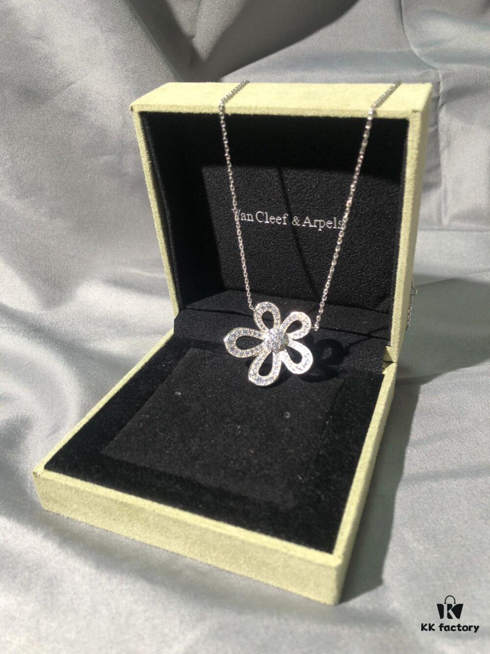 Mini Small Clover Necklace Made of Fine Silver, Crafted Like 18K Gold Authentic Pieces with VCA Au750 Engraving