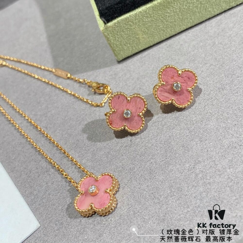 New Arrival V Gold High Version Rhodonite VCA Clover Stud Earrings