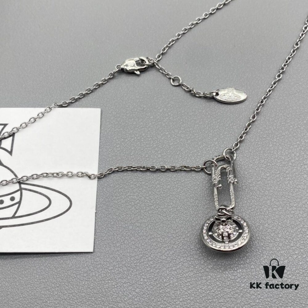 Vivienne Westwood Saturn Pearl Necklace – Medium Size, Rhinestone-Embellished Crown Pendant with Elegant Shine