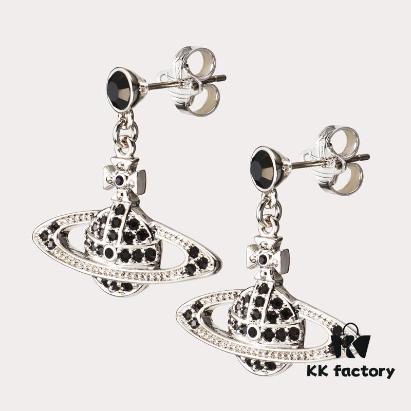 West Grandma Black Crystal Diamond Platform Saturn Stud Earrings