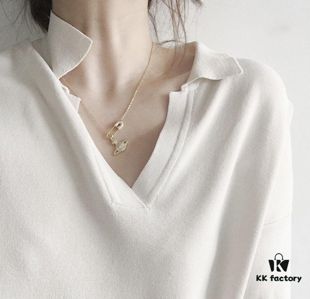 West Dame Mini Pearl Saturn Necklace in Gold and Silver Two Colors