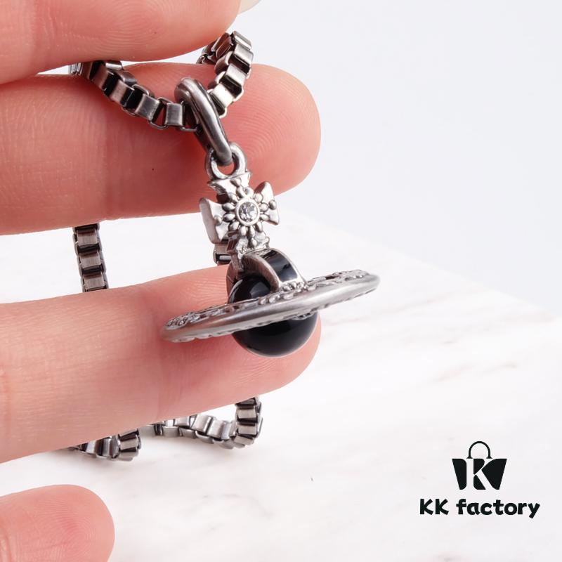 West Queen 3D Black Glass Ball Necklace
