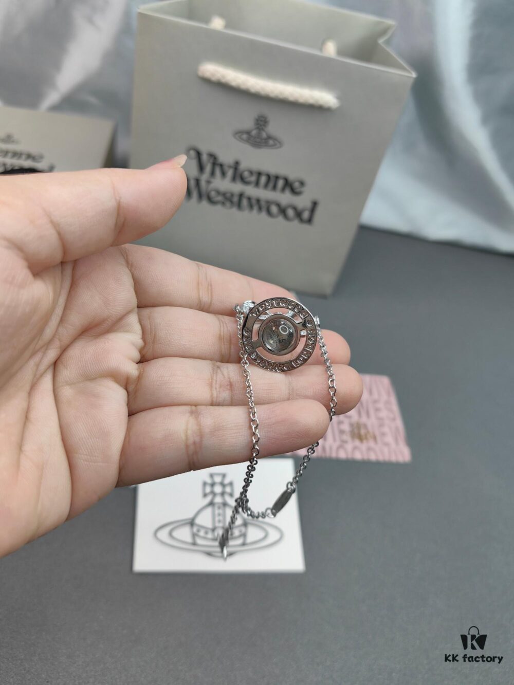 West Grandma Transparent Glass Bead Bow Bracelet in White Gold Color