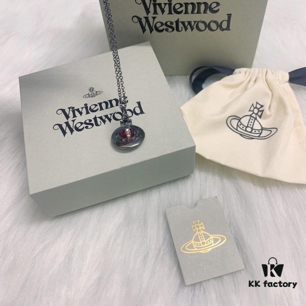 West Queen 3D Red Glass Ball Necklace in Black Gunmetal Color