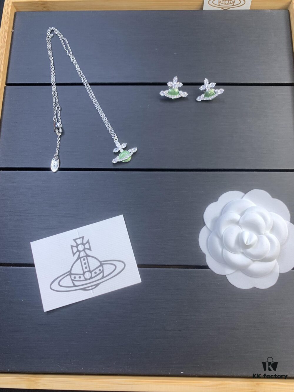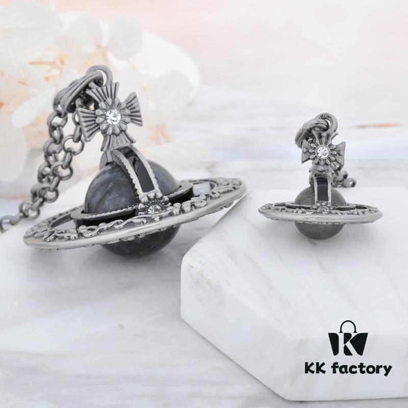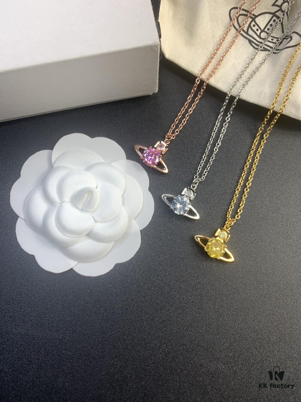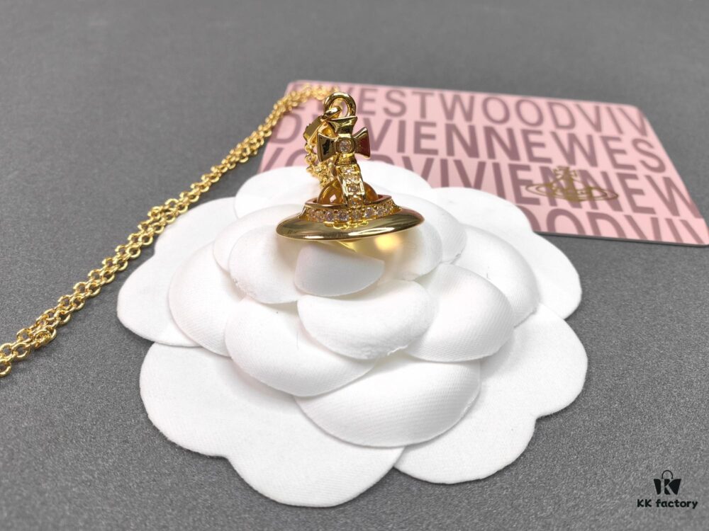 West Queen Saturn Necklace with Powder Diamond in Gold Color