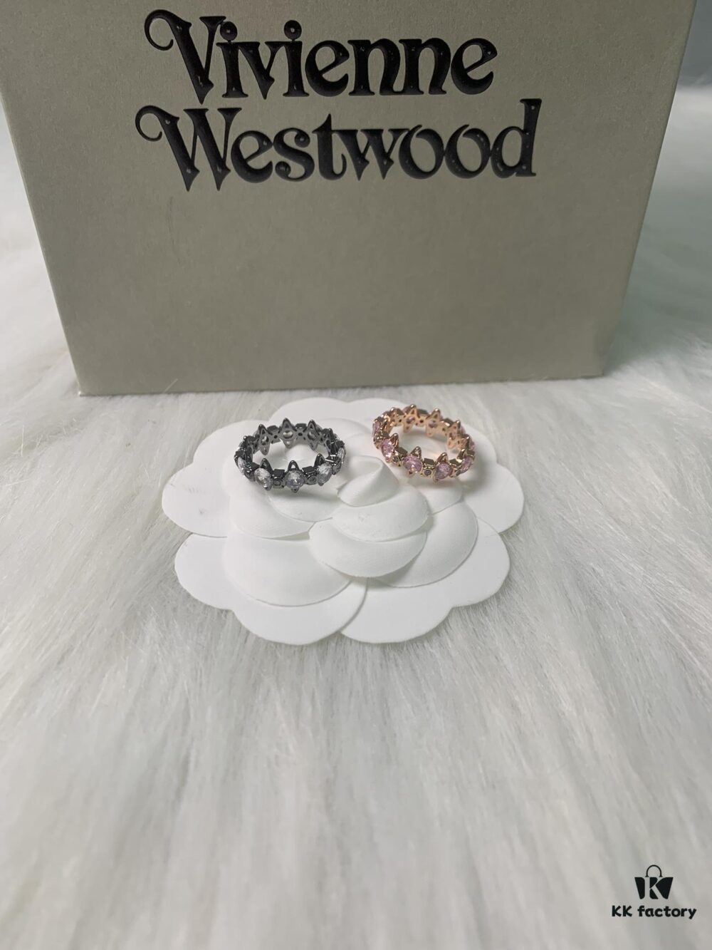 West Queen Saturn Ring Set in Black and White Gold with White Diamonds, Rose Gold with Pink Diamonds