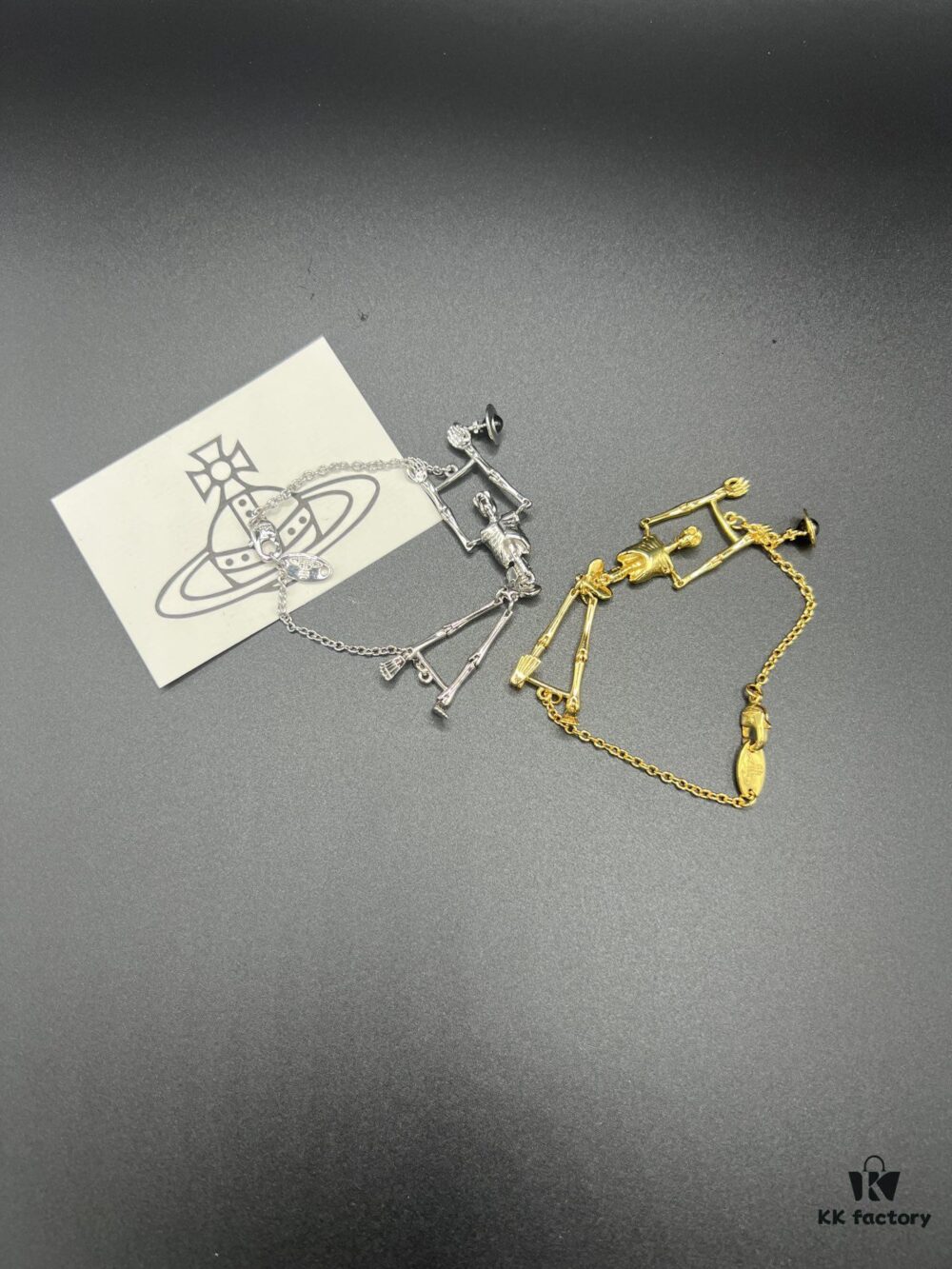 West Queen Skeletal Earrings, Necklace, and Bracelet, Two Colors: White Gold and Yellow Gold C35