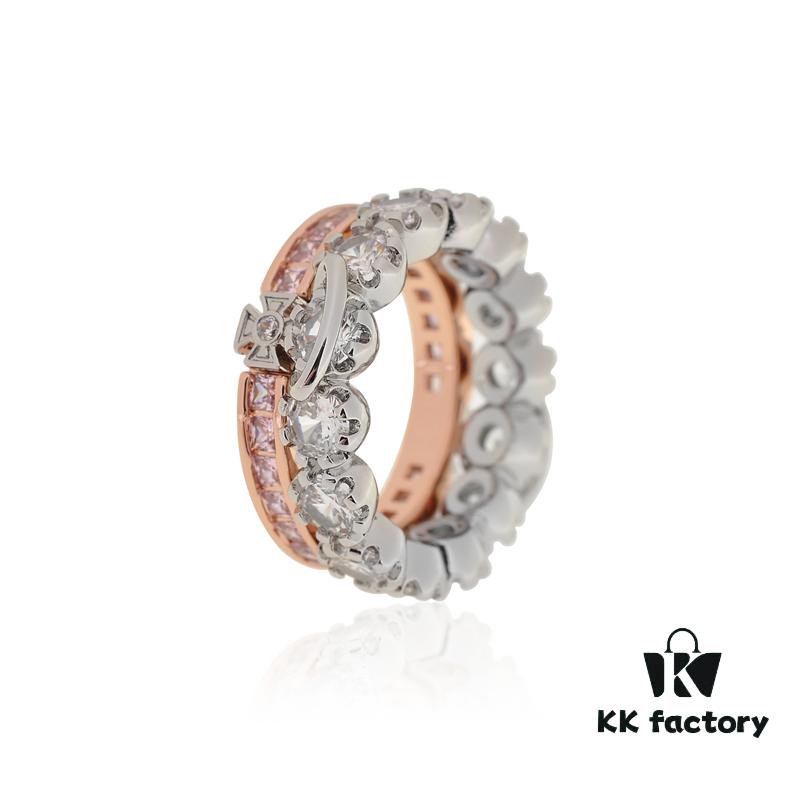 Westminster Double Layer Large Diamond Saturn Ring – Rose Gold