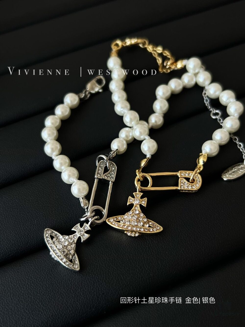 Saturn | Vivienne Westwood Jewelry Double-Layer Pearl Necklace and Bracelet