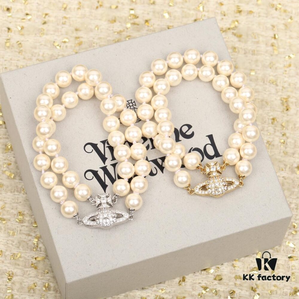 Vivienne Westwood Full Crystal Saturn Double Layer Pearl Bracelet