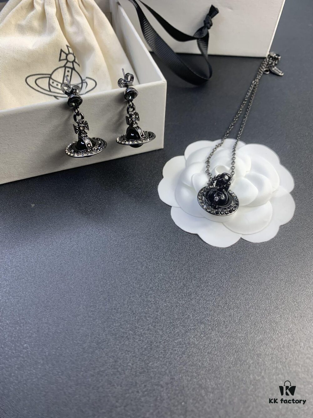 Vivienne Westwood Gradient Black 3D Saturn Necklace and Earrings Set