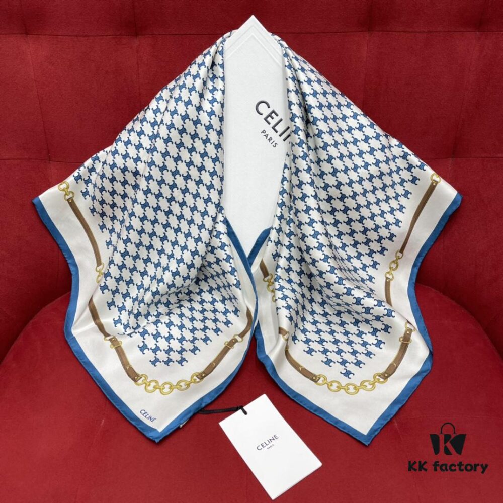 CELINE Vintage-inspired Triumphal Arch Pattern Square Scarf with Belt Buckle Detail, Classic and Elegant, 100% Mulberry Silk, 90*90CM
