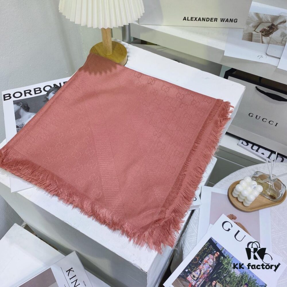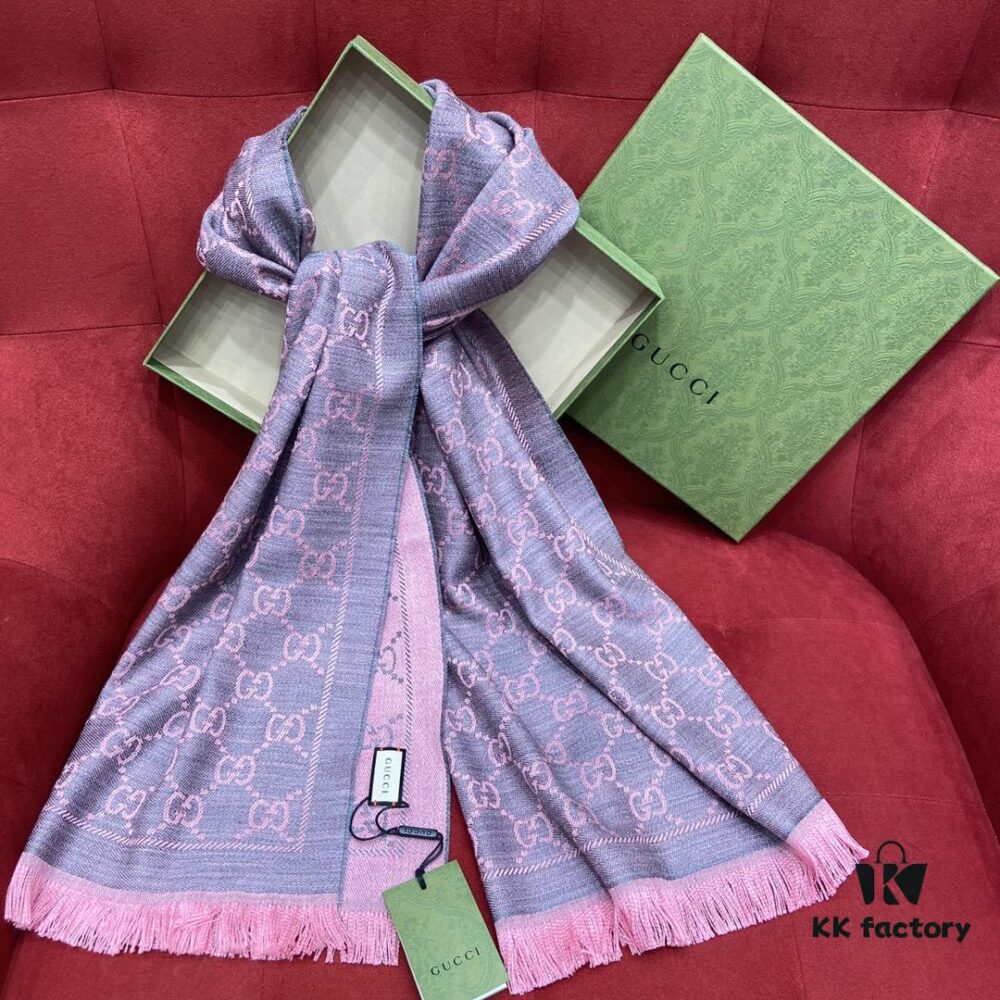 Classic Upgrade – Gray Pink | GUCCI, The Original Divine Aesthetic Style, So Soft and Elegant, Great Value, Double-Sided 3D Jacquard Craft, Wearable on Both Sides, 100% Wool, Extremely Soft and Non-Irritating, 48cm*180cm