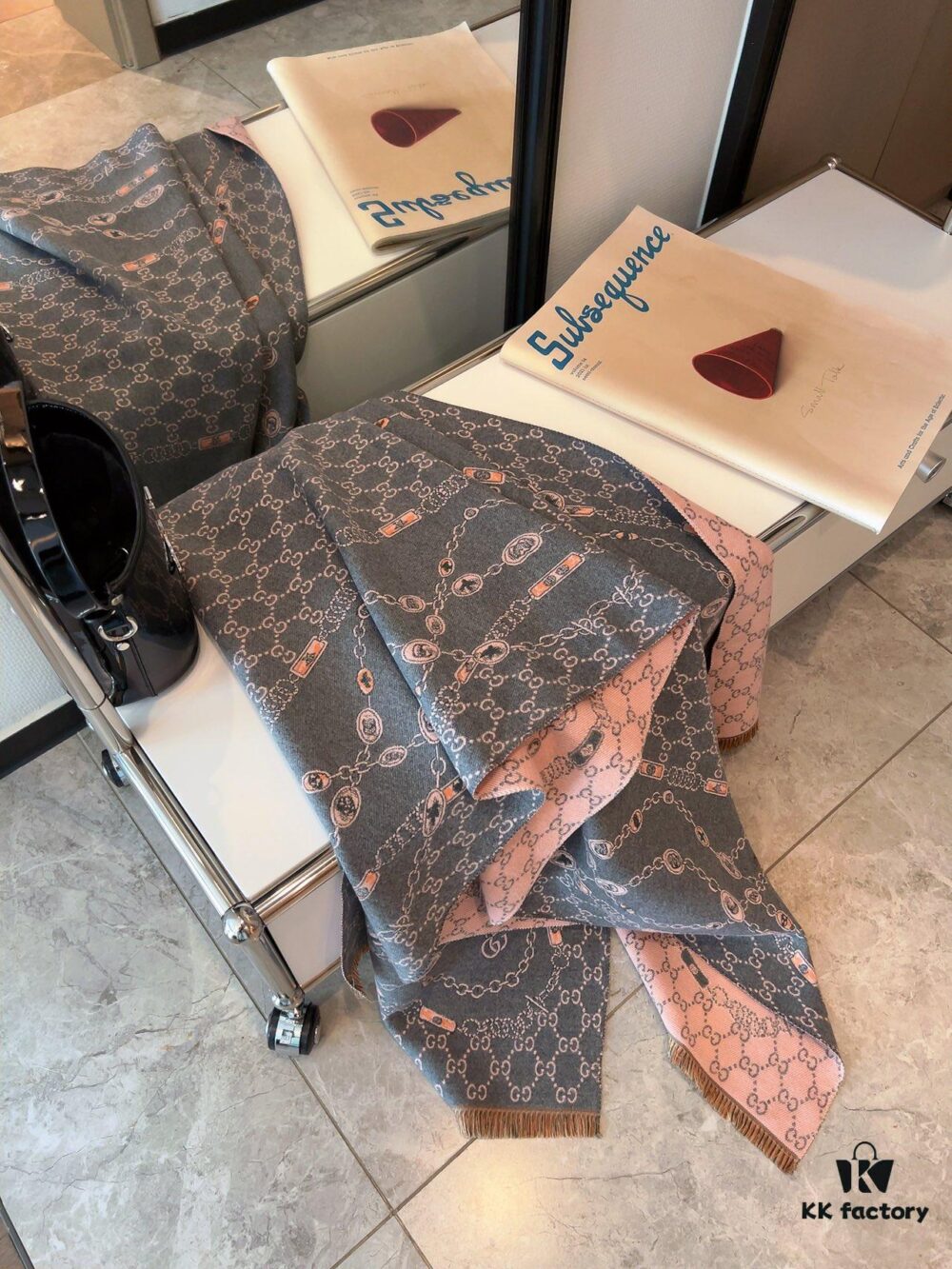 Classic Upgrade – Black Gray | GUCCI This is the Original Divine Aesthetic Design, So Elegant and Generous, Exceptionally Valuable, Double-Sided 3D Jacquard Technique, Wearable on Both Sides, 100% Wool, Extremely Soft, Non-Irritating to Skin, 48cm*180cm