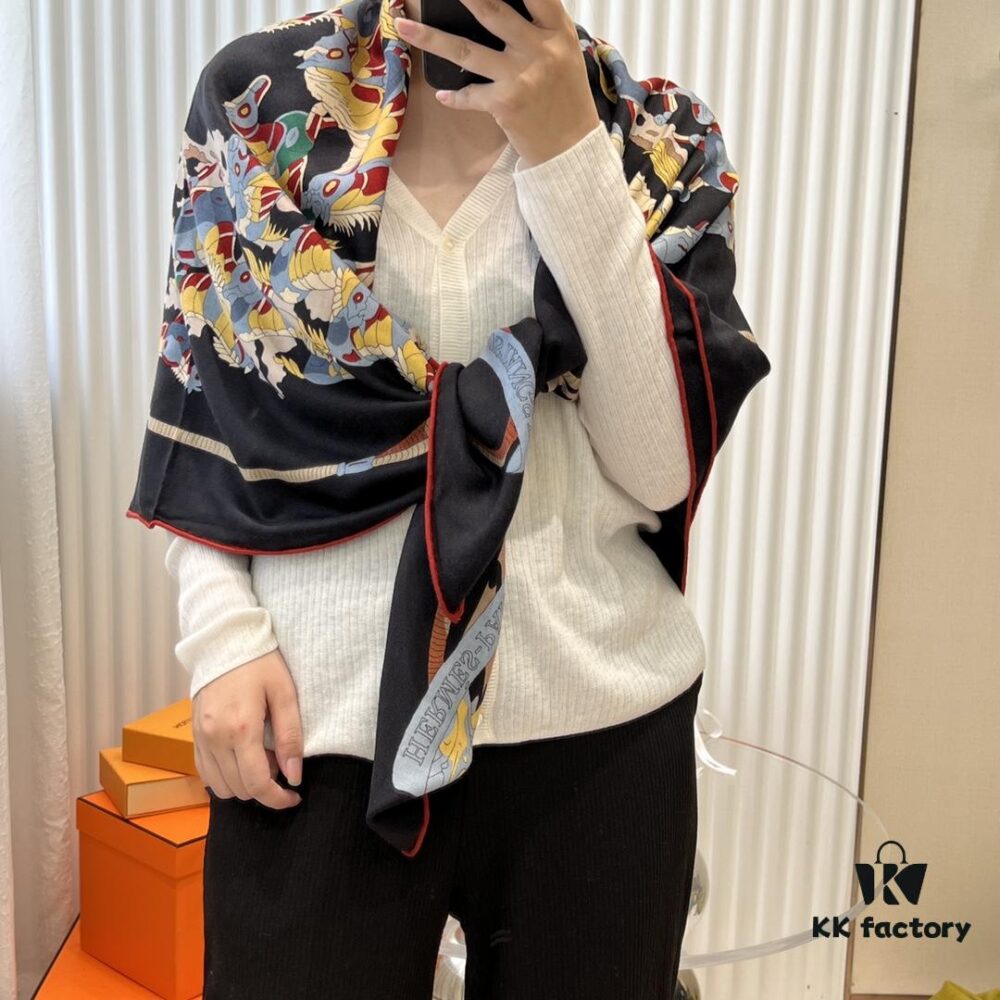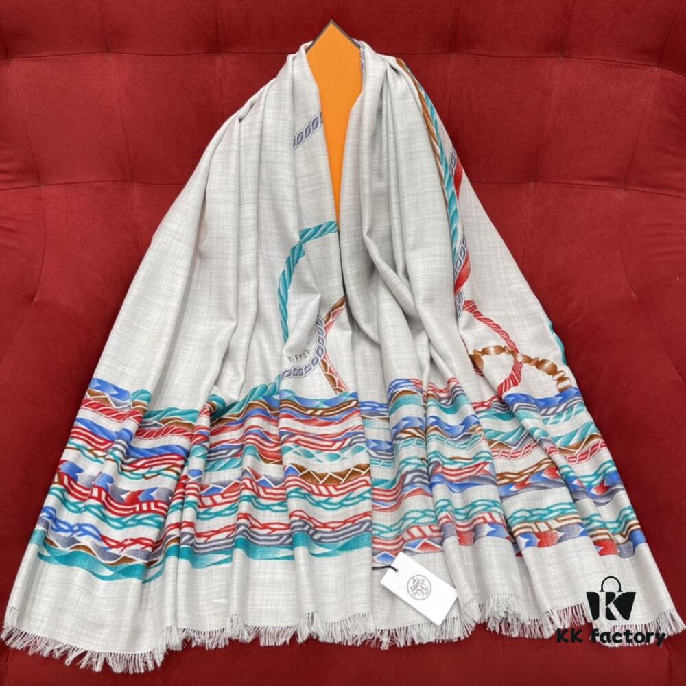 Hermès 1:1 Pattern Cashmere Scarf – Authentic 300-Thread Pure Cashmere, Upgraded Fabric, 100*200 cm, In Stock in Three Colors