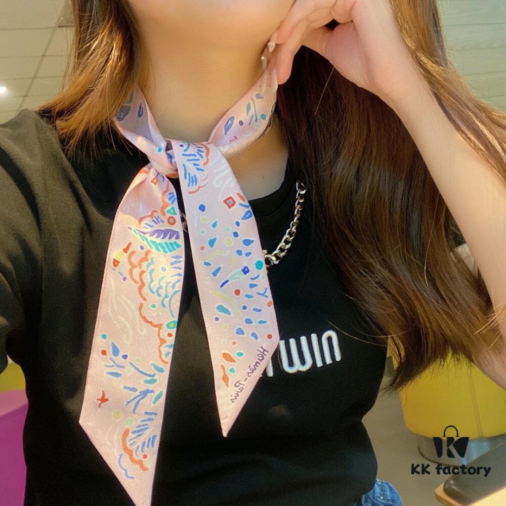 Hermès WOW Silk Hair Band – Dual-Sided Design, 100% Twill Silk, Scarf for Neck, Wrist, Waist or Bag Accessory