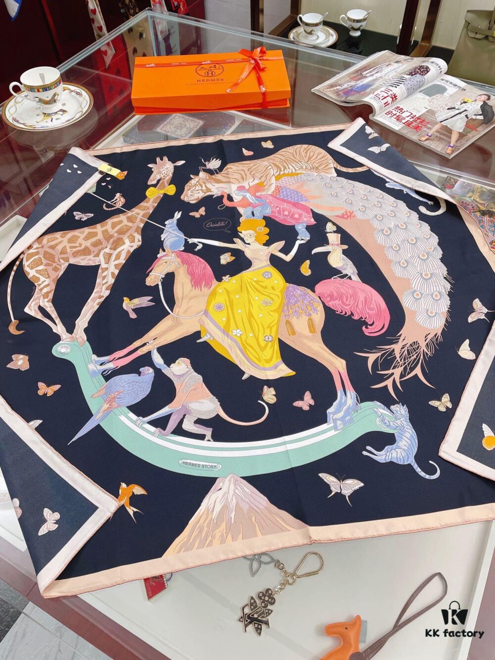 Hermès-style Silk Square Scarf, 100% Premium Twill Silk, 90cm x 90cm, Top Craftsmanship, Exceptional Value