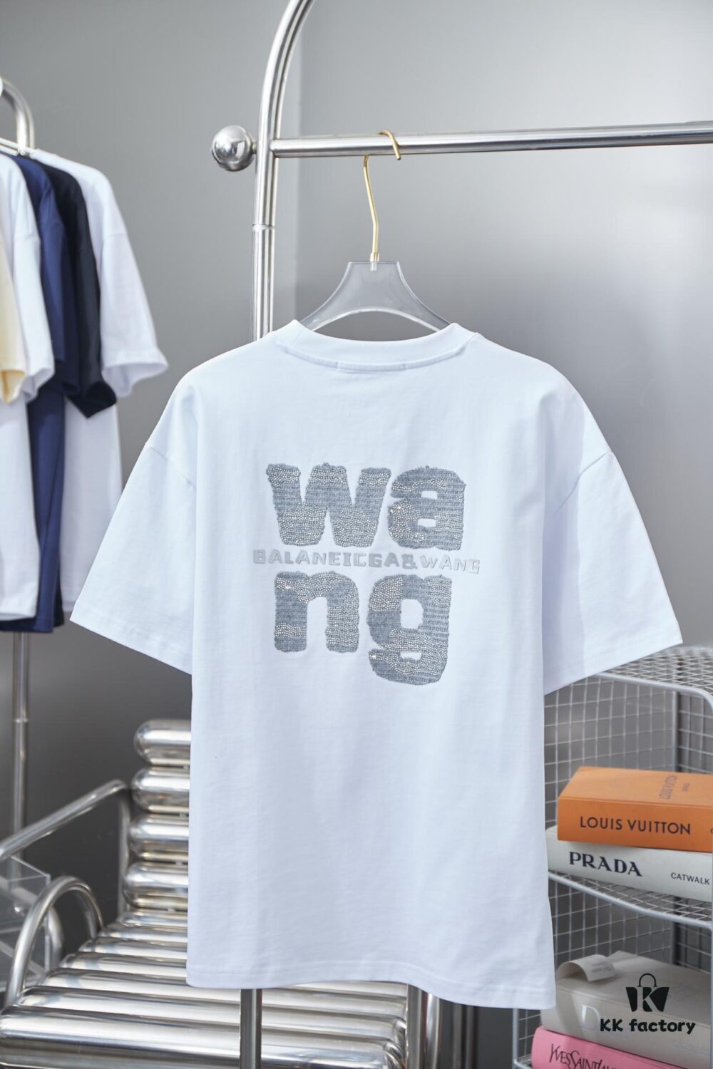 Alexarde*wang 25SS Early Spring New Arrival Applique Letter Rhinestone Short Sleeve T-Shirt