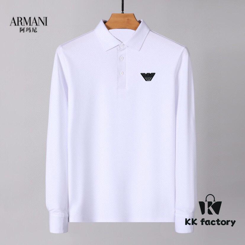 Armani Hot New Custom Notched Collar Long Sleeve Polo Shirt