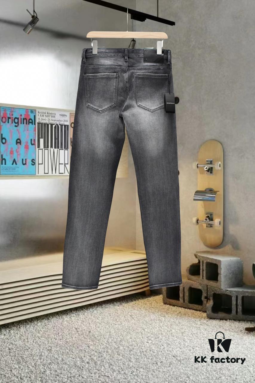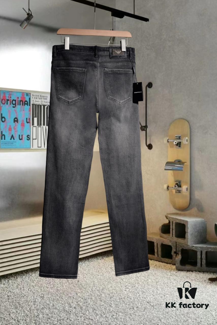 Armani, 2024 New Arrival, Same as Counter, Original Order High-Quality Washed Casual Jeans, Imported Premium Stretch Denim Fabric, Comfortable and Elastic, Authentic Hardware Logo Trims, Excellent Fit and Extremely High End, Counter Quality, Stylish and Well-Structured When Worn