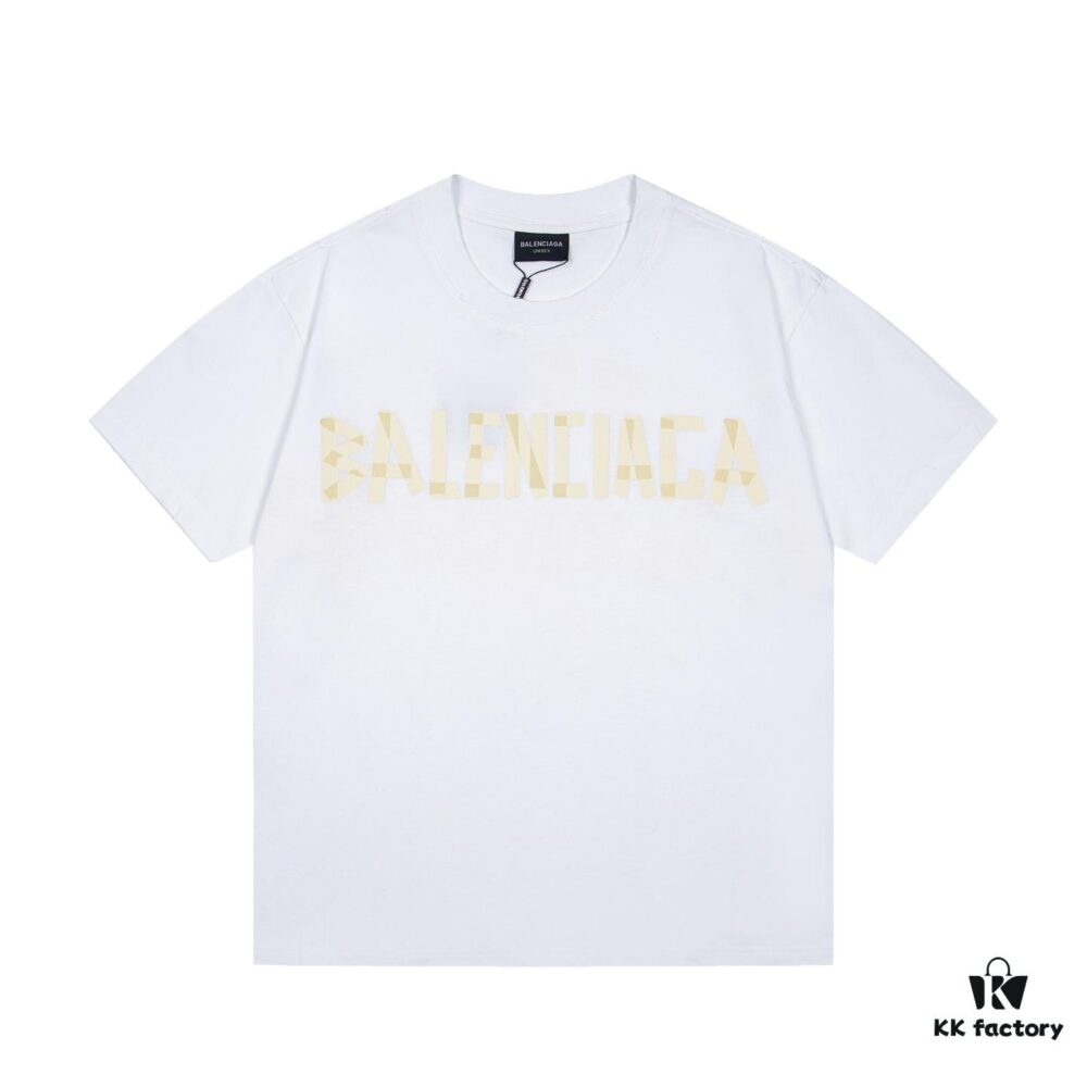 BALENCIAGA Tape Logo Printed Short-Sleeve T-Shirt, Made from 280g Double-Layer Pure Cotton Fabric, Comfortable and Soft to Wear, Featuring Raised Tape Logo Printing for a Premium, Three-Dimensional Look, High-Quality Replica, Complete with All Three Labels