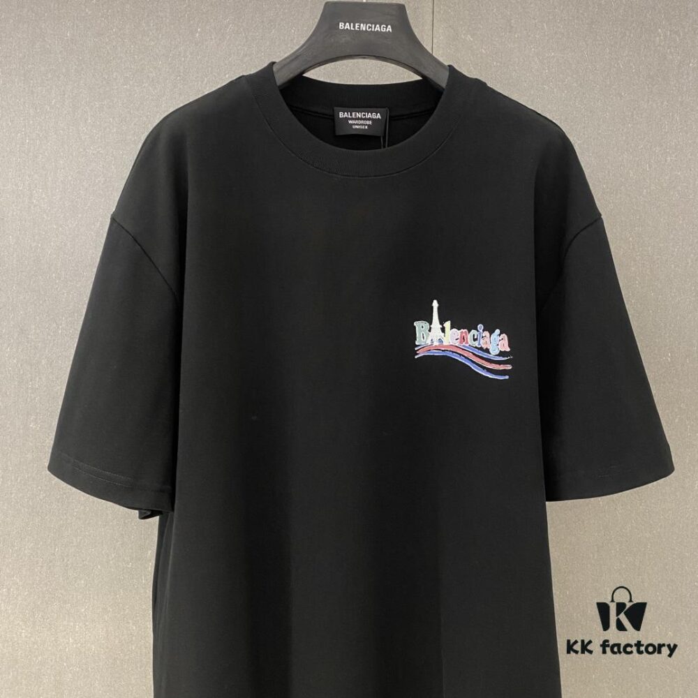High-End Quality Balenciaga 2025 Fall Spring/Summer Collection Art Logo Short Sleeve T-Shirt Imported Kangwo Digital Direct-to-Garment Printing Custom-Dyed High-Quality Streetwear 26-Single 100% Washed 300G Garment-Dyed and Washed Snowflake OS Loose Fit Unisex