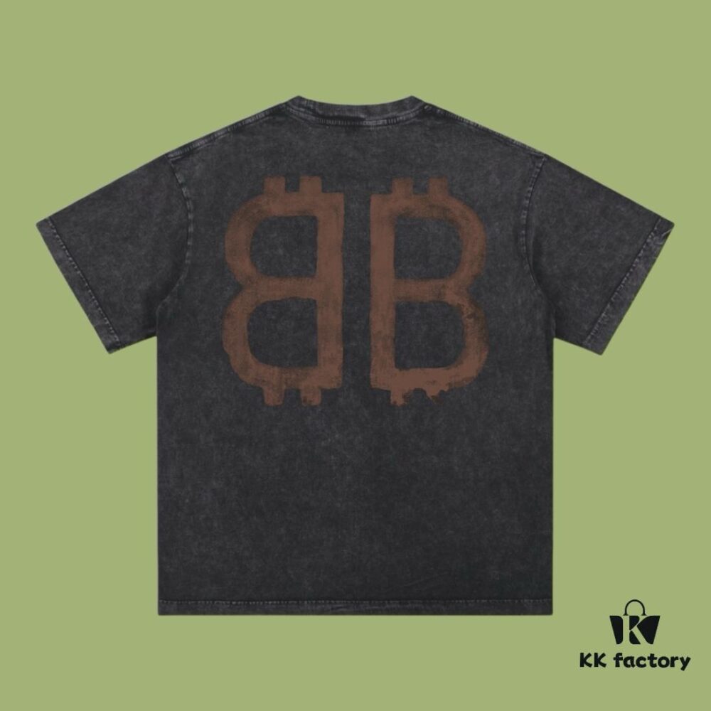High-End Quality Balenciaga 2025 Fall Spring/Summer Collection Double B Short Sleeve T-Shirt Imported Kanglong Digital Direct-to-Garment Printing Custom-Dyed High-Quality Streetwear 26-Single 100% Washed 300G Garment-Dyed and Washed Snowflake Finish OS Loose Fit Unisex
