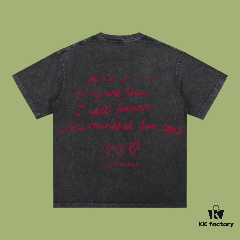 High-End Quality Balenciaga 2025 Fall Spring/Summer Collection Valentine’s Day Short Sleeve T-Shirt, Imported Kanglong Digital Direct-to-Garment Printing, Premium Streetwear 26-Single 100% Cotton Pre-Washed 300G Garment-Dyed and Washed with Snowflake Effect, OS Loose Fit Unisex Design