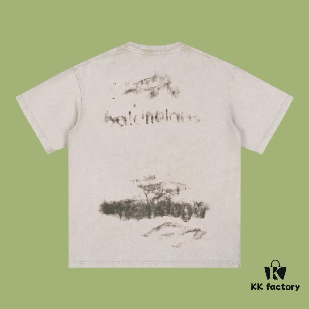 High-End Quality Balenciaga 2025 Fall Spring/Summer Collection Smoke Logo Short Sleeve T-Shirt, Imported Kanglong Digital Direct-to-Garment Printed, Premium Streetwear Quality, 26-Single 100% Washed 300G Fabric, Garment-Dyed and Snow-Washed Finish, OS Loose Fit Unisex Design