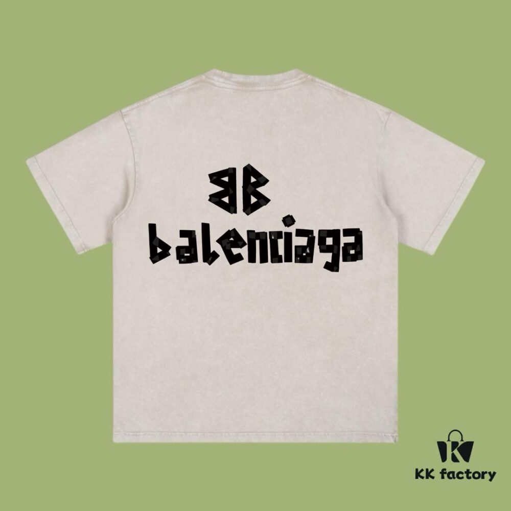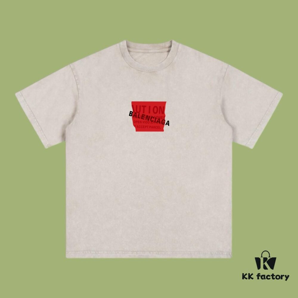 High-End Quality Balenciaga 2025 Fall Spring/Summer Collection Slogan Short-Sleeve T-Shirt, Imported Kangwo Digital Direct-to-Garment Printing, Custom-Dyed Premium Streetwear Brand 26s Double Yarn 100% Washed 300G Finished Garment Dyeing and Snow-Washed OS Loose Fit Unisex