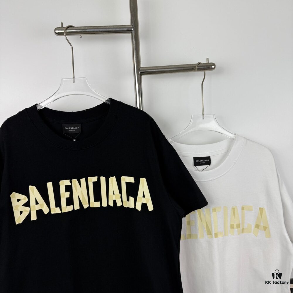 New Arrival Balenciaga-Inspired Tape Logo Distressed Short-Sleeve T-Shirt