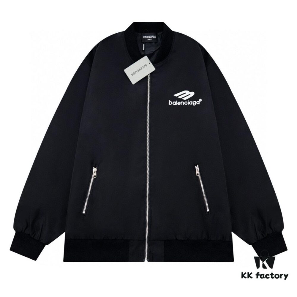 New Balenciaga 2023 Embroidered Stand Collar Jacket Unisex Waterproof Coated Double-Layered with Lining
