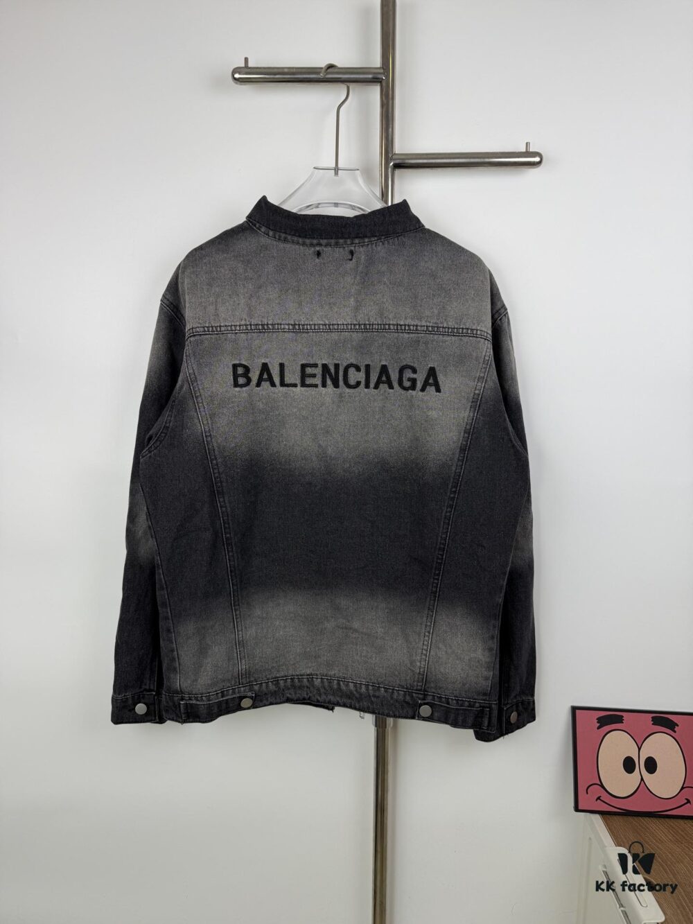 New Balenciaga Logo Embroidered Washed Denim Gray Jacket